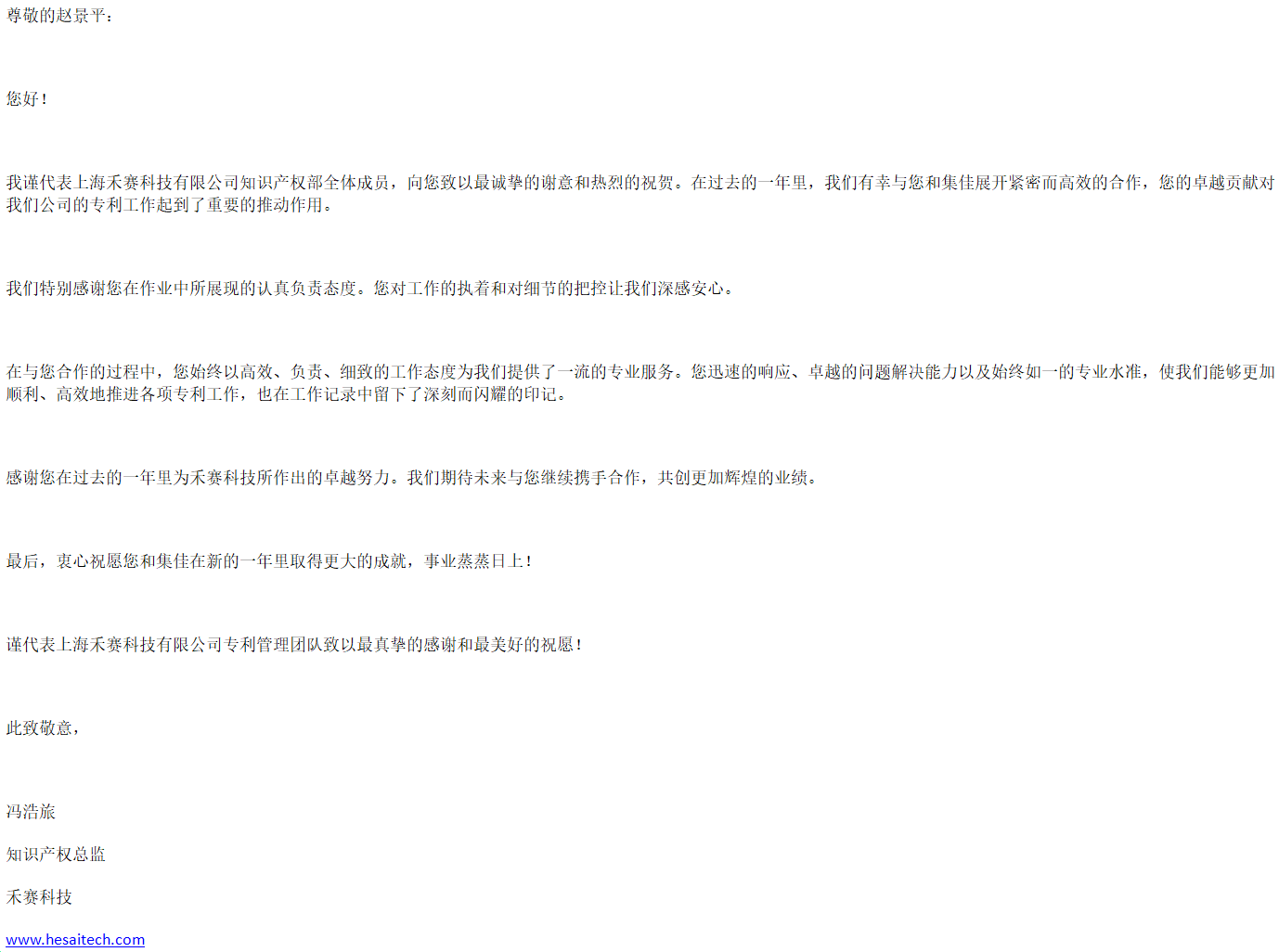 新年伊始,集佳喜获来自客户上海禾赛科技有限公司的感谢信,对欧陆娱乐上海分所提供的优质服务表示感谢。